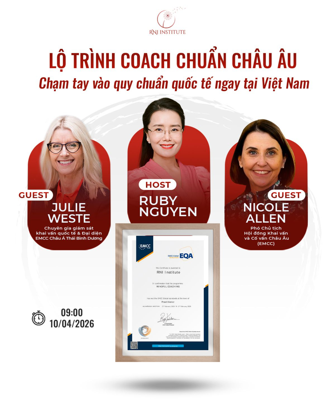 Cùng Cô Ruby Nguyen và các Chuyên gia của Hội đồng Khai vấn và Mentor châu Âu (EMCC): Cô Nicole Allen & Cô Julie Weste